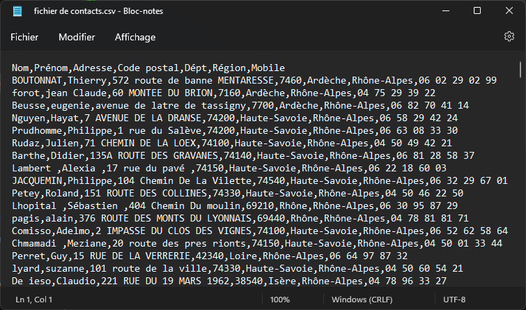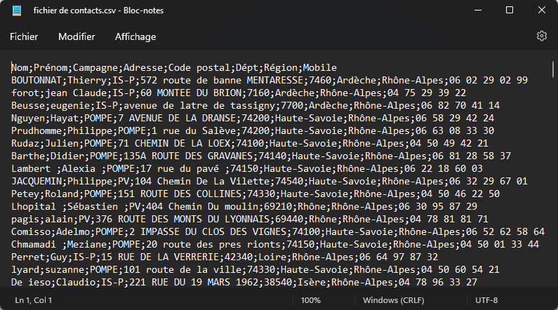 Une fois le fichier ouvert, vous pouvez voir que les données de chaque cellule sont séparées par un point-virgule entre elles, et vous obtiendrez un résultat comme illustré dans la capture ci-dessous.