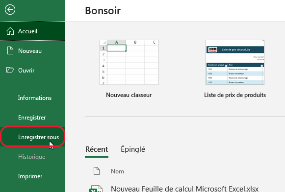 Accédez au menu « Fichier », puis cliquez sur la commande « Enregistrer sous » dans la barre latérale gauche. Alternativement, appuyez sur la touche « F12 » de votre clavier pour ouvrir la même boîte de dialogue « Enregistrer sous ».