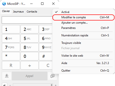 To delete an account from MicroSIP, open the menu and click on “Edit account”.