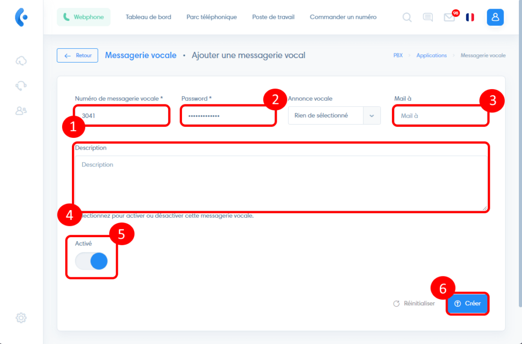 ניתן ליצור, לצפות בהודעות ולהתאים אישית הודעות קוליות על ידי חיוג *97 מהשלוחה המתאימה או מהממשק המקוון.