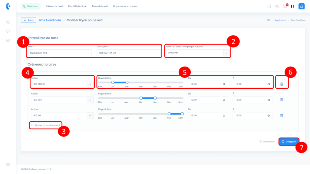 לאחר יצירת לוח הזמנים שלך, תוכל לנתב שיחות ממספר אחד או יותר לתנאים אלה. לשם כך, עיין במאמר " הגדרת המספרים שלך ".