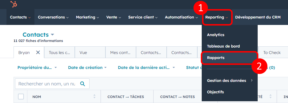 לחץ על התפריט הנפתח "דיווח", ולאחר מכן על "דוחות":