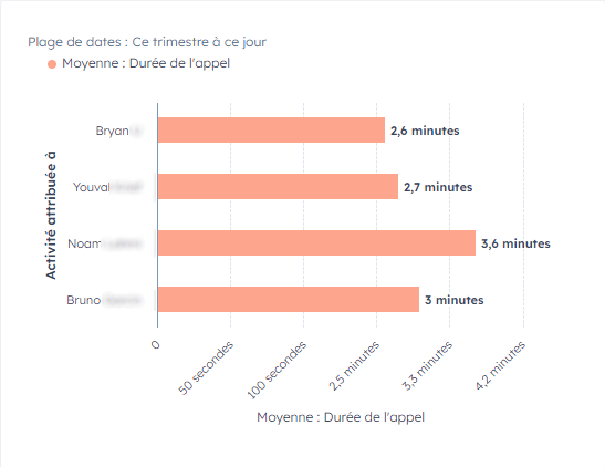 דוח זה יציג את הזמן הממוצע שכל משתמש מבלה בשיחות בפרק הזמן שנבחר. כדי לקבל פירוט של שיחות, פשוט לחץ על כל אחת מנקודות הנתונים בגרף.