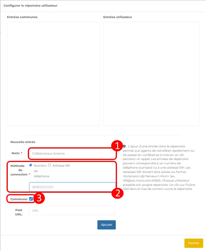 הוספת רשומה מאפשרת למשתמשים להעביר את השיחה או לבצע שיחה משולשת עם שותף פעולה חיצוני, על ידי הוספת מספר הטלפון שלהם או כתובת SIP.